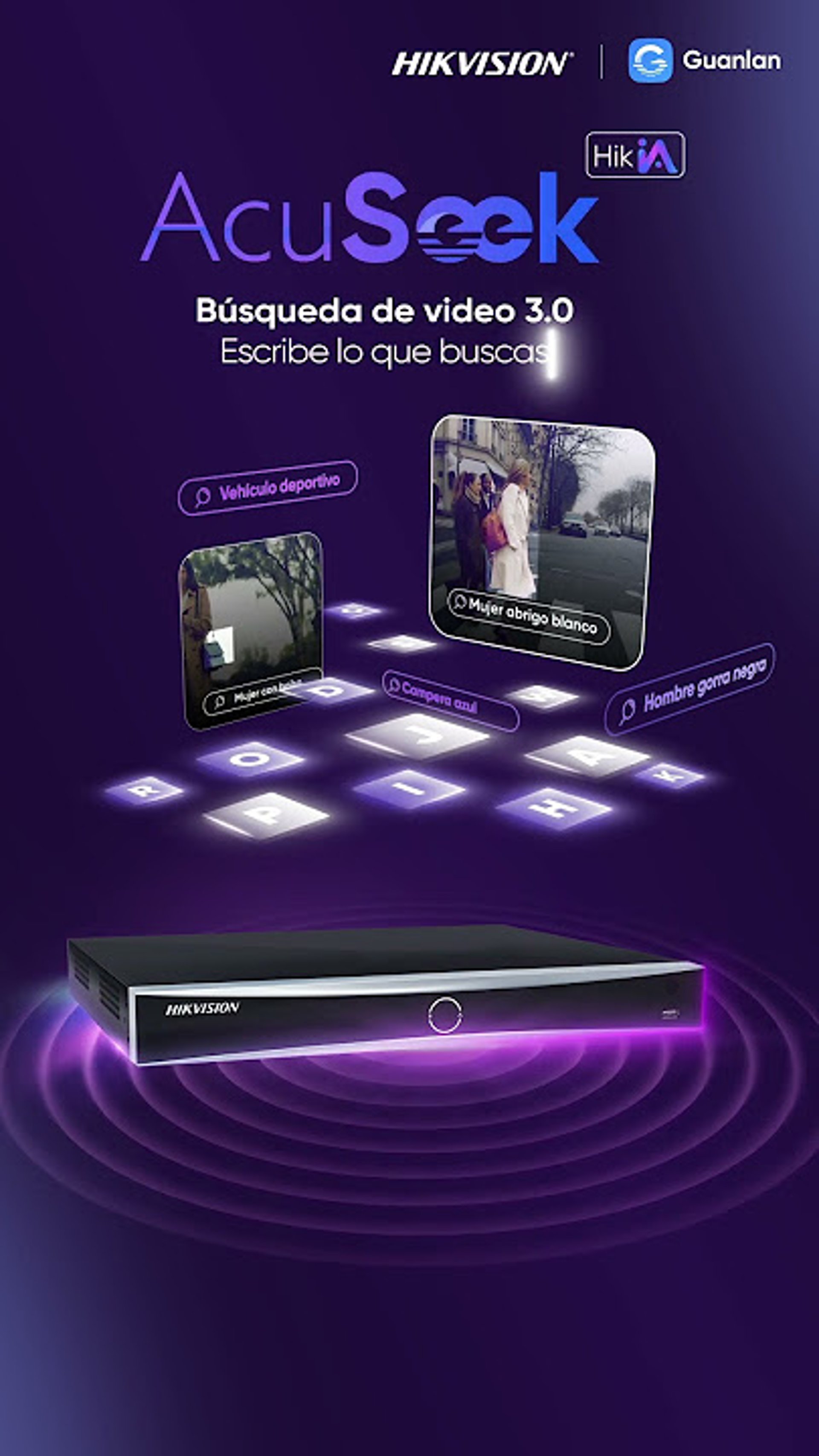 Gracias al motor de IA AcuSeek integrado en nuestros grabadores, ya no es necesario revisar horas de video manualmente. El sistema permite realizar búsquedas por lenguaje natural o atributos específicos (como "persona con mochila azul" o "vehículo blanco"), indexando metadatos en tiempo real para localizar cualquier evento en cuestión de segundos.